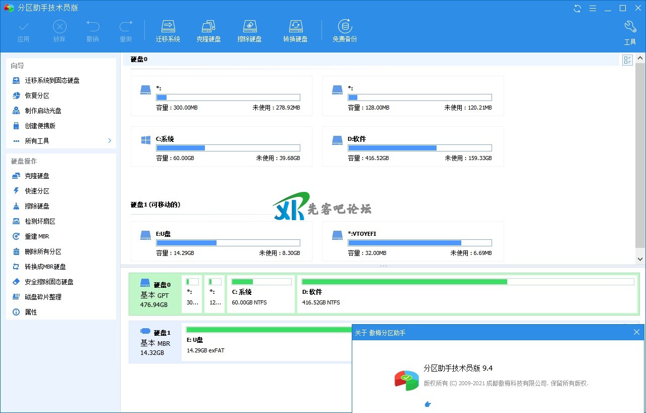 [电脑软件] 分区助手技术员v9.14.0特别版 |